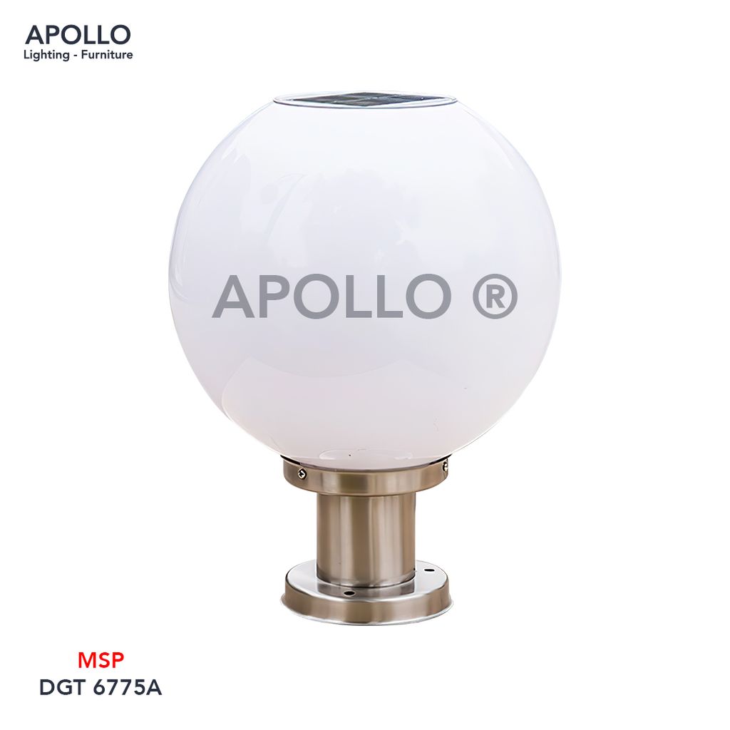 Chất liệu | Hợp kim sơn tĩnh điện, Inox 304 không gỉ sét, Quả cầu mica trắng sữa |