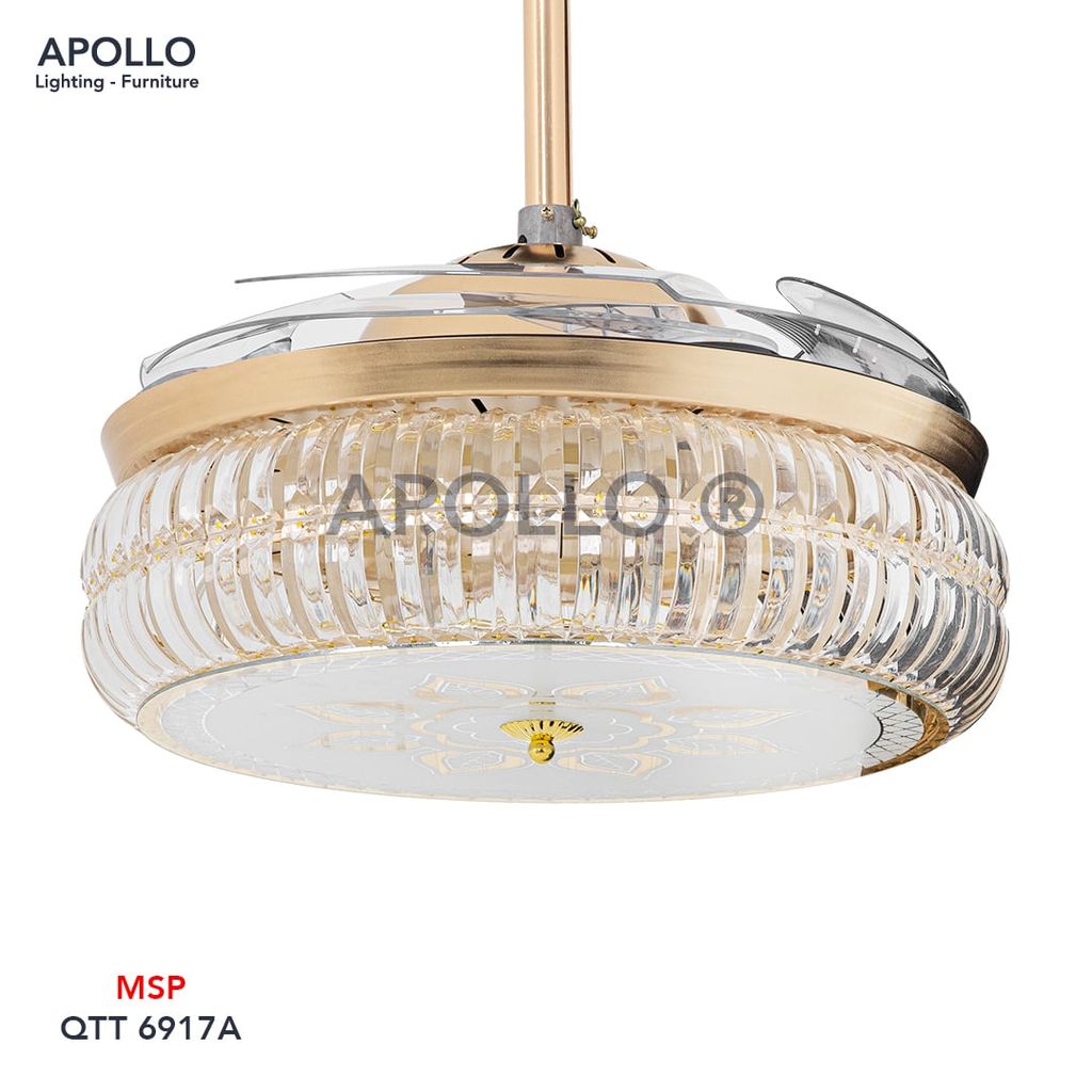 Chất liệu | Hợp kim xi mạ, Pha lê K9 cao cấp, cánh quạt Arcylic cao cấp |