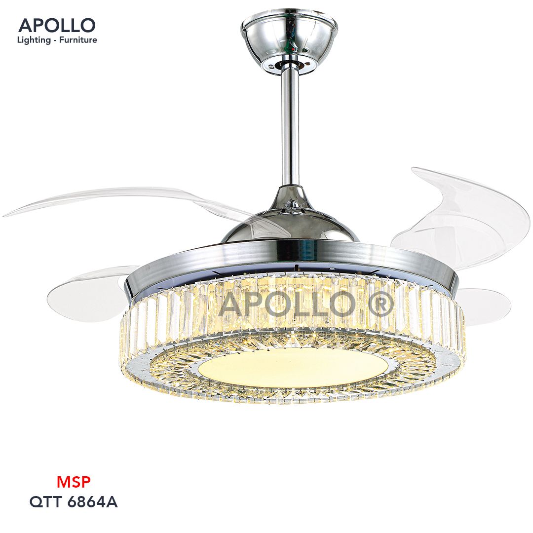 Quạt trần pha lê cánh cụp trang trí phòng khách, phòng ăn, phòng ngủ v...v